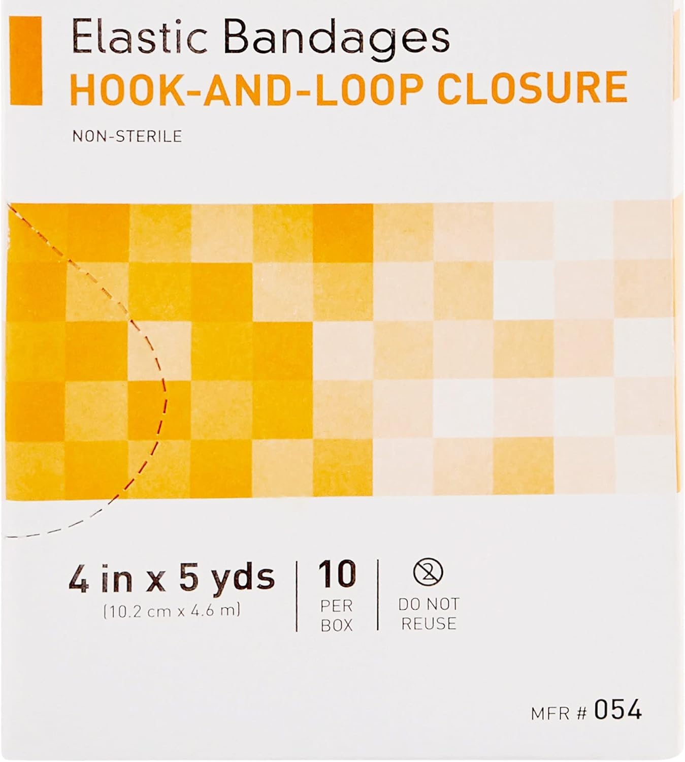 Use this non-sterile bandage to support an injury with the compression it needs for recovery. Wrap sprains and strains using the elastic bandage to reduce pressure on the stressed or injured joints and muscles. The knit bandage is designed to provide comfortable and controlled compression for trauma to the body. It offers firm and stable support to injured areas to reduce stress on muscles and tendons. The flexible, stretchy support bandage can even help secure ice packs, dressings and splints. It's latex-free for those with allergies or sensitive skin. A hook-and-loop closure secures the injured area rapidly. The fastener omits the need for standard metal clips. It measures a sizable 4 in x 5 yds to cover most injured limbs or to firmly hold a device.